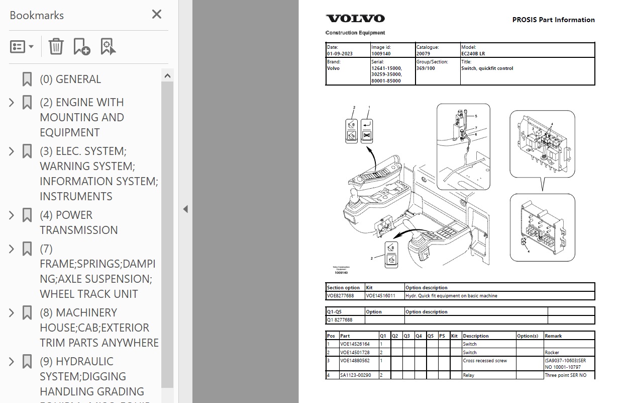 VOLVO EC240B LR EXCAVATOR PARTS CATALOG MANUAL 842 PAGES UPDATED COMPLETE INFO 2023