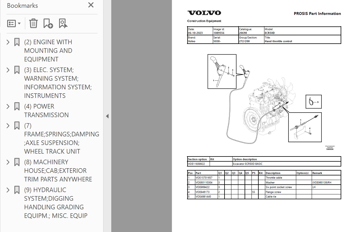 VOLVO ECR50D COMPACT EXCAVATOR PARTS CATALOG MANUAL 440 PAGES UPDATED COMPLETE INFO 2023.