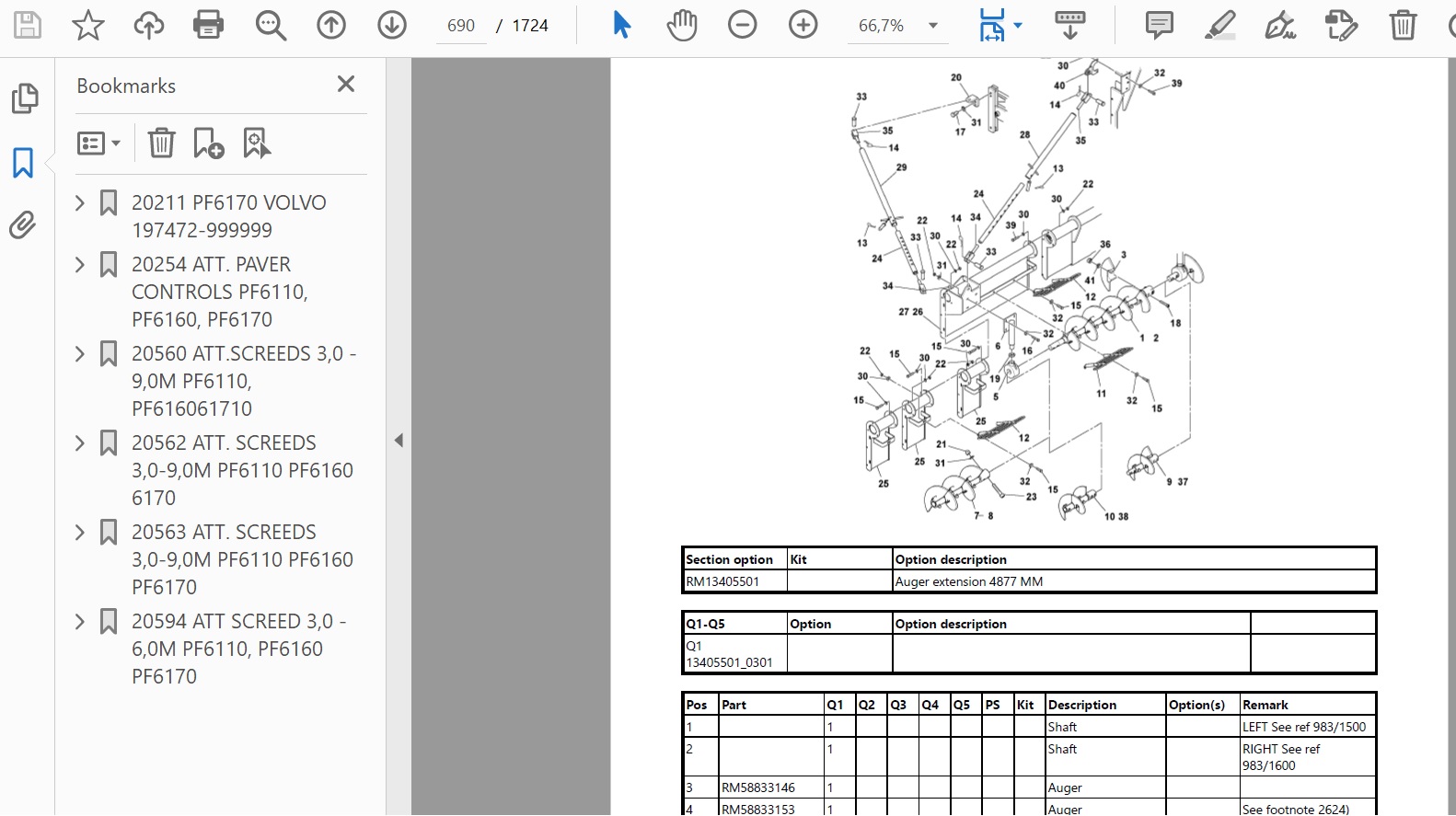 Contents of VOLVO PF6170 WHEELED PAVER PARTS MANUAL (1724 PAGES) UPDATED INFO 2021