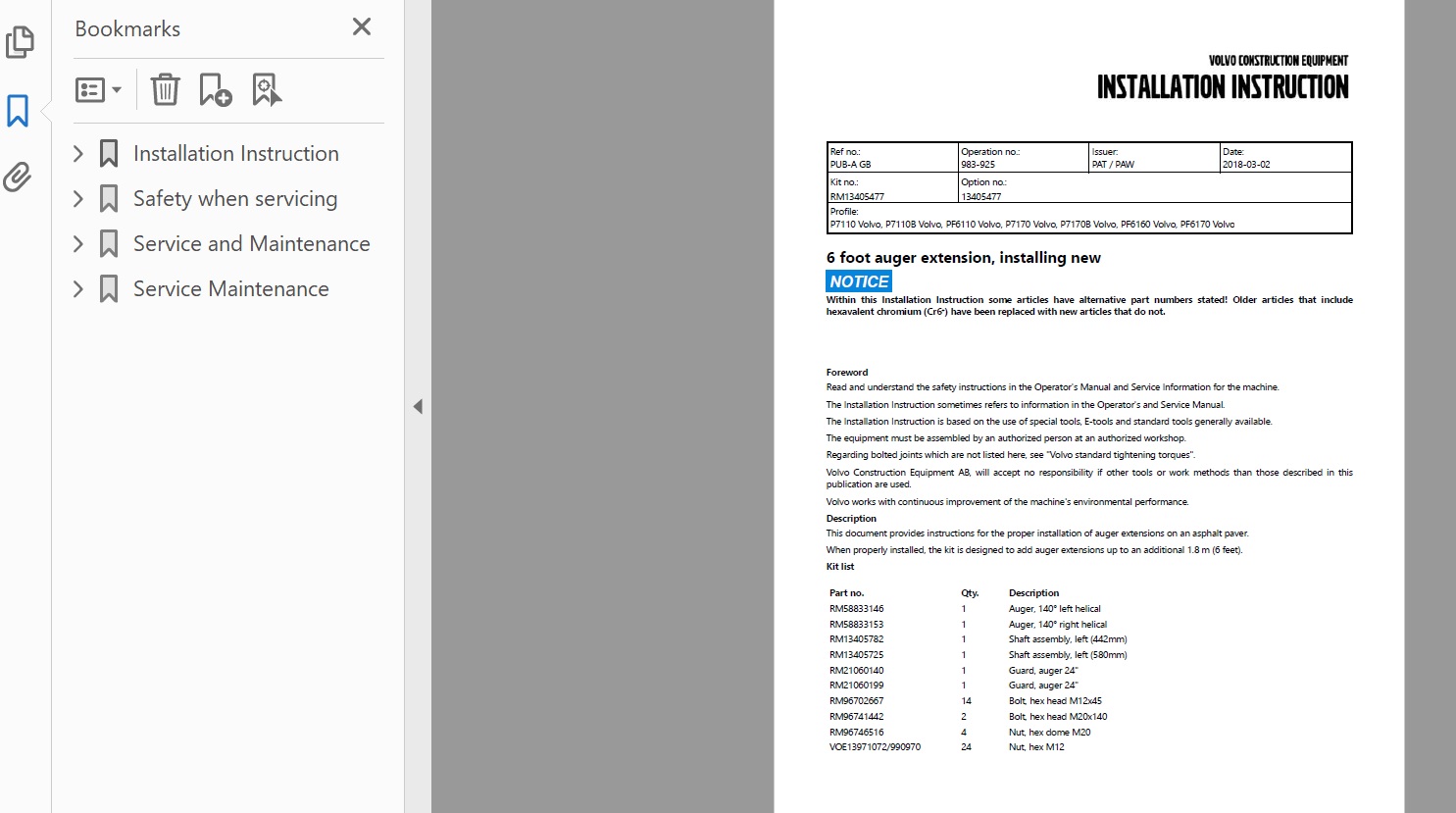 Contents of VOLVO PF6170 WHEELED PAVERS OPERATOR MAINTENANCE MANUAL (285 PAGES) UPDATED INFO 2018